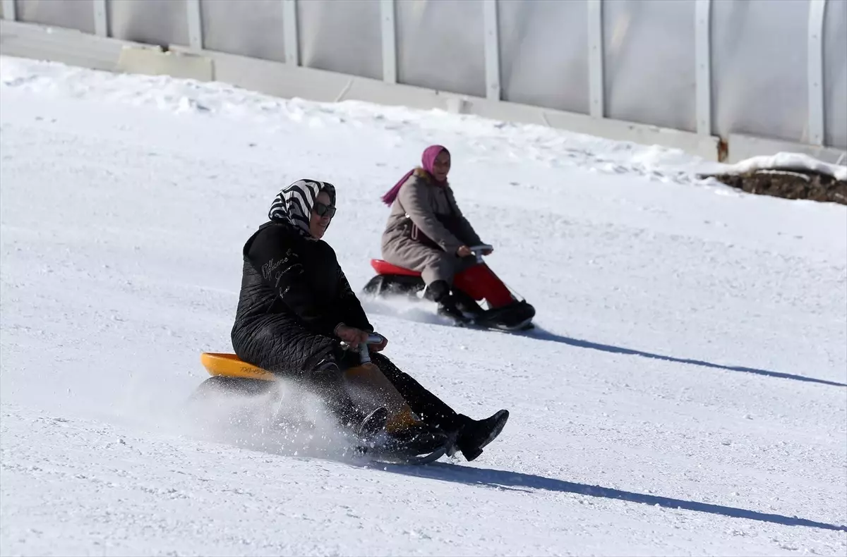 Kayseri’de Erciyes Dağı eteklerindeki Hacılar ilçesinde yaşamalarına rağmen daha önce görme fırsatı bulamadıkları kayak merkezine Kaymakamlık organizasyonuyla giden kadınlar, doyasıya…